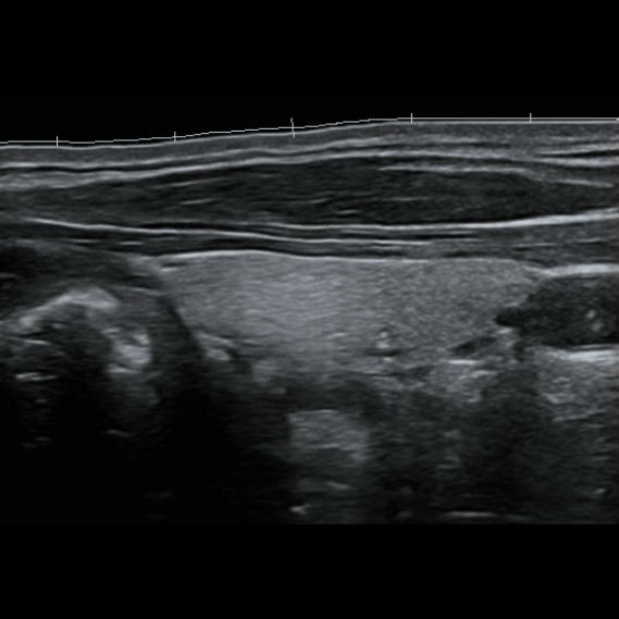Нажав кнопку iScape мы просто проводим датчик вдоль оси сканирования, и прибор сопоставляет сканируемые изображения в единую, практически бесконечно длинную картину. Теперь влезет всё и продольное сечение щитовидной железы, и широкие гематомы, и крупные кисты Бейкера, и ахиллово сухожилие во всю длину с подробным указанием точек надрыва и указанием расстояния от пяточной кости для уточнения топики травмы даже при изгибе контактной поверхности.