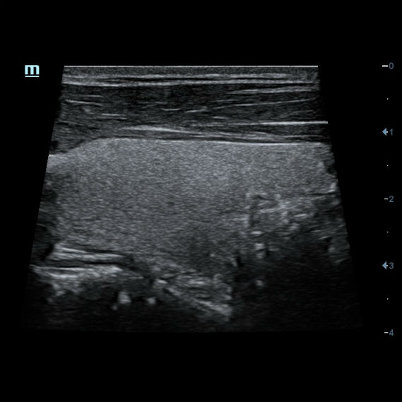 Нажав кнопку iScape мы просто проводим датчик вдоль оси сканирования, и прибор сопоставляет сканируемые изображения в единую, практически бесконечно длинную картину. Теперь влезет всё и продольное сечение щитовидной железы, и широкие гематомы, и крупные кисты Бейкера, и ахиллово сухожилие во всю длину с подробным указанием точек надрыва и указанием расстояния от пяточной кости для уточнения топики травмы даже при изгибе контактной поверхности.