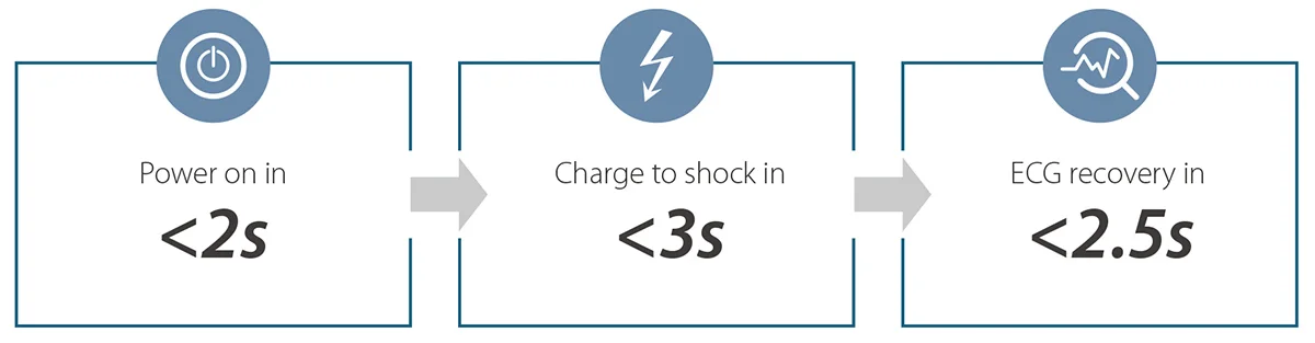 • Технология QShockTM обеспечивает чрезвычайно быструю дефибрилляцию, ведь на счету каждая секунда.