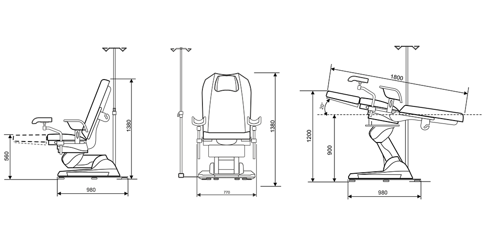 • - 20° наклон в позиции по Тренделенбургу.