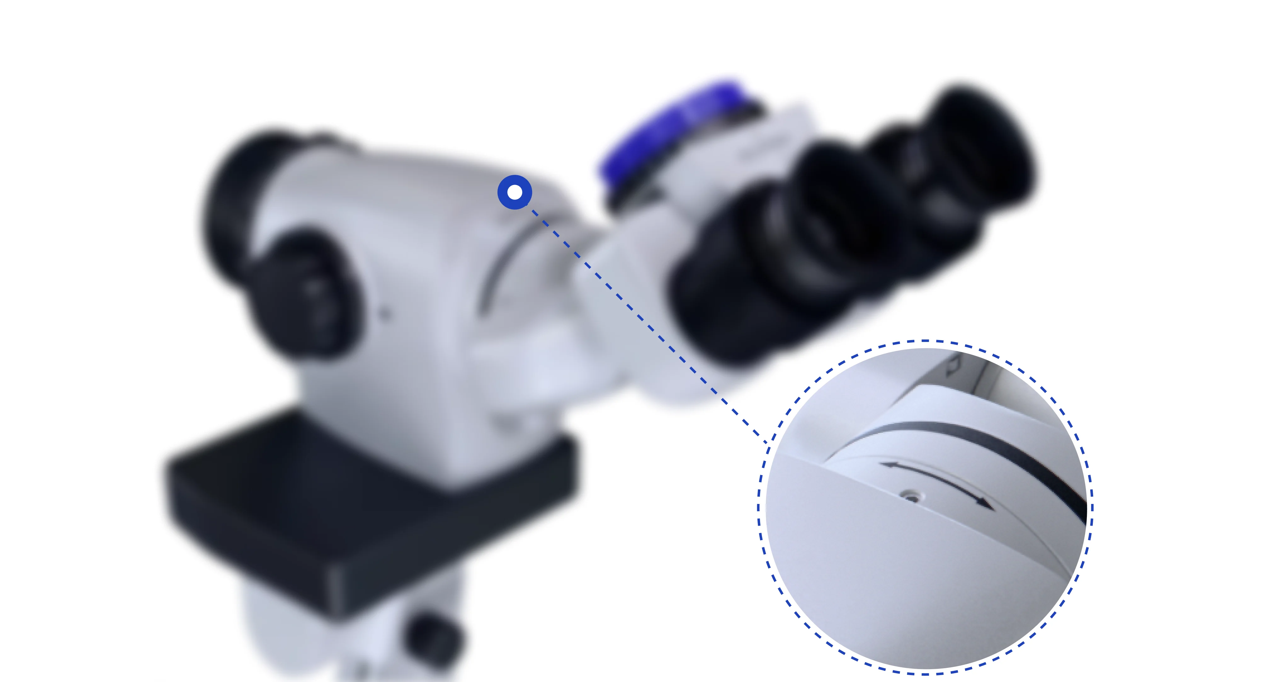 Бинокулярный тубус кольпоскопа AC-5000 можно поворачивать на ±10° влево и вправо, что позволяет удобно настраивать его для комфортной горизонтальной работы.