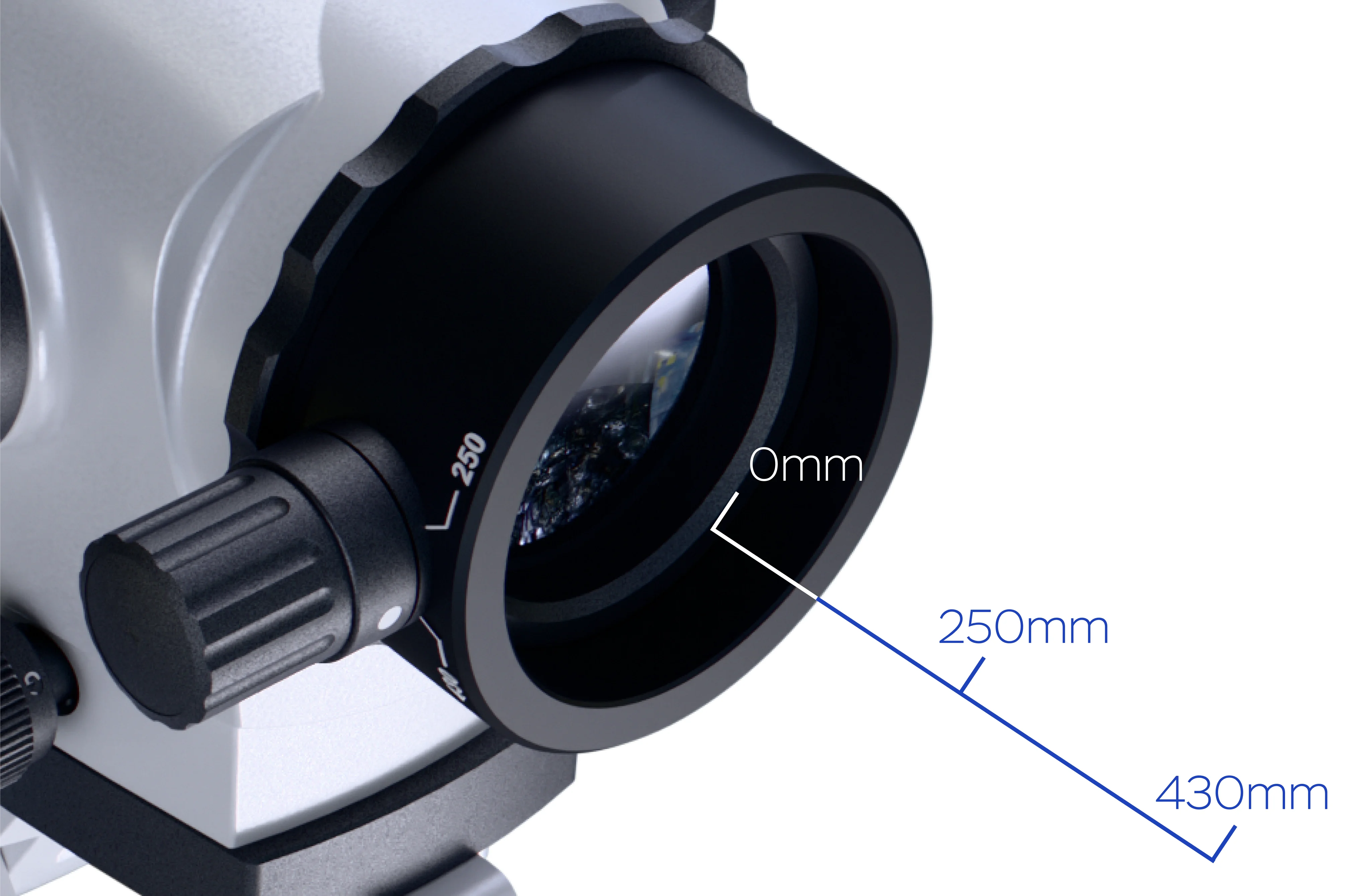 - Снижение нагрузки на врача – настройка рабочей дистанции и увеличения минимизирует необходимость двигать прибор, что повышает эргономику работы.