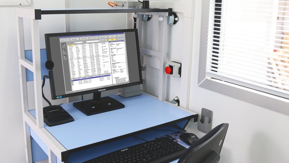 - Лабораторный и диагностический кабинеты оснащены всем необходимым специализированным медицинским оборудованием для профилактических осмотров населения. Для защиты от вибрационных и транспортных нагрузок, вся мебель и медицинское оборудование при перевозке надежно фиксируется.