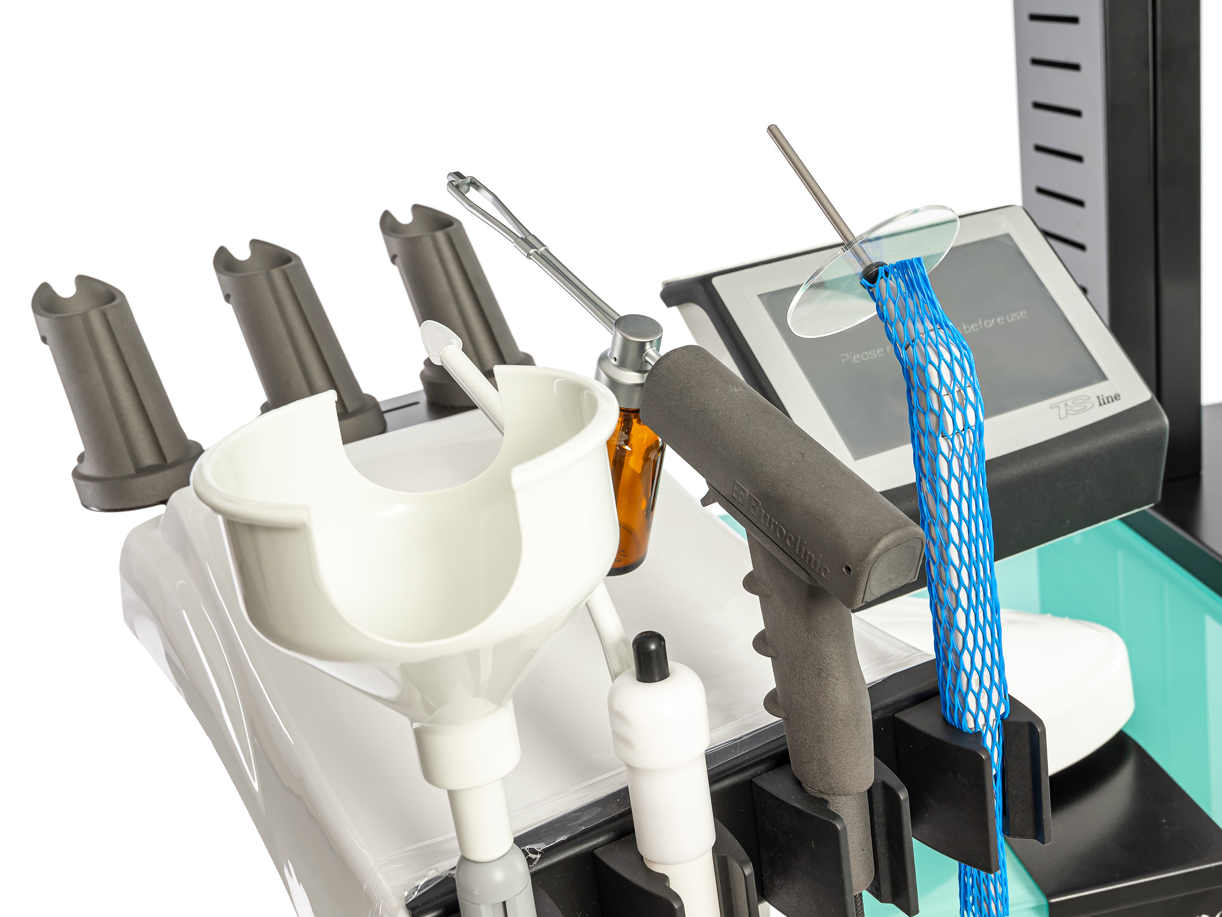 Отдельные малые приборы и расходные материалы хранятся в рабочем модуле ЛОР комбайна Euroclinic Otocompact Professional. Он интегрирован в общую конструкцию системы и снабжен удобным колесным основанием. Верхнее отделение под прозрачной крышкой дополнено тремя выдвижными ящиками, один из которых оборудован УФ лампой для проведения быстрой дезинфекции. Во время операции или обследования можно изолировать использованные элементы в специальный встроенный контейнер. Как и многие другие устройства ЛОР направления, этот аппарат совместим с внешними устройствами, включая видеокамеры, персональный компьютер или негатоскоп.