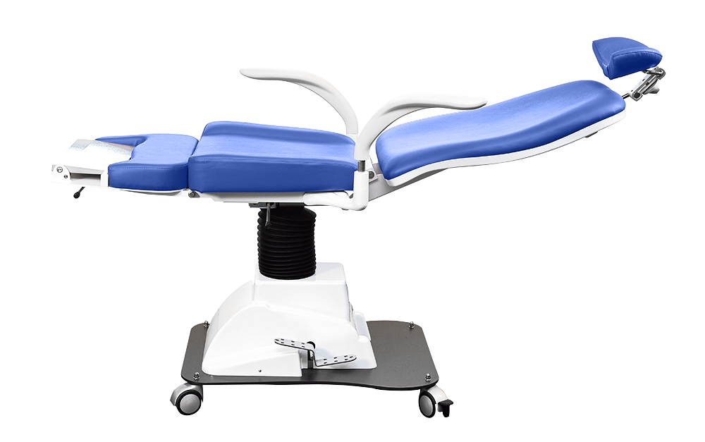 ЛОР-кресло пациента с таким же эстетическим дизайном, что и модель OTO P/V Professional, но оснащенное гидравлической системой, позволяющей опускать и поднимать кресло.