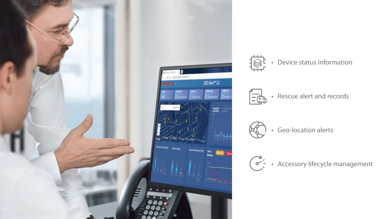Система AED-Alert 2.04 обеспечивает быстрое и эффективное удаленное управление дефибриллятором на основе технологии loT, а также предоставляет возможность автоматической самодиагностики (вместо осмотра вручную) для снижения ежедневных затрат на обслуживание.