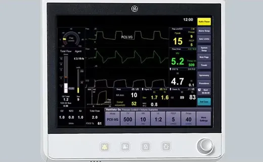 15-дюймовый сенсорный дисплей Простой и удобный в использовании 15-дюймовый сенсорный дисплей аппарата искусственной вентиляции легких с интуитивно понятным интерфейсом CARESCAPEПриводящая сила, доставляющая дыхательный обьем газовой смеси в легкие пациента.
