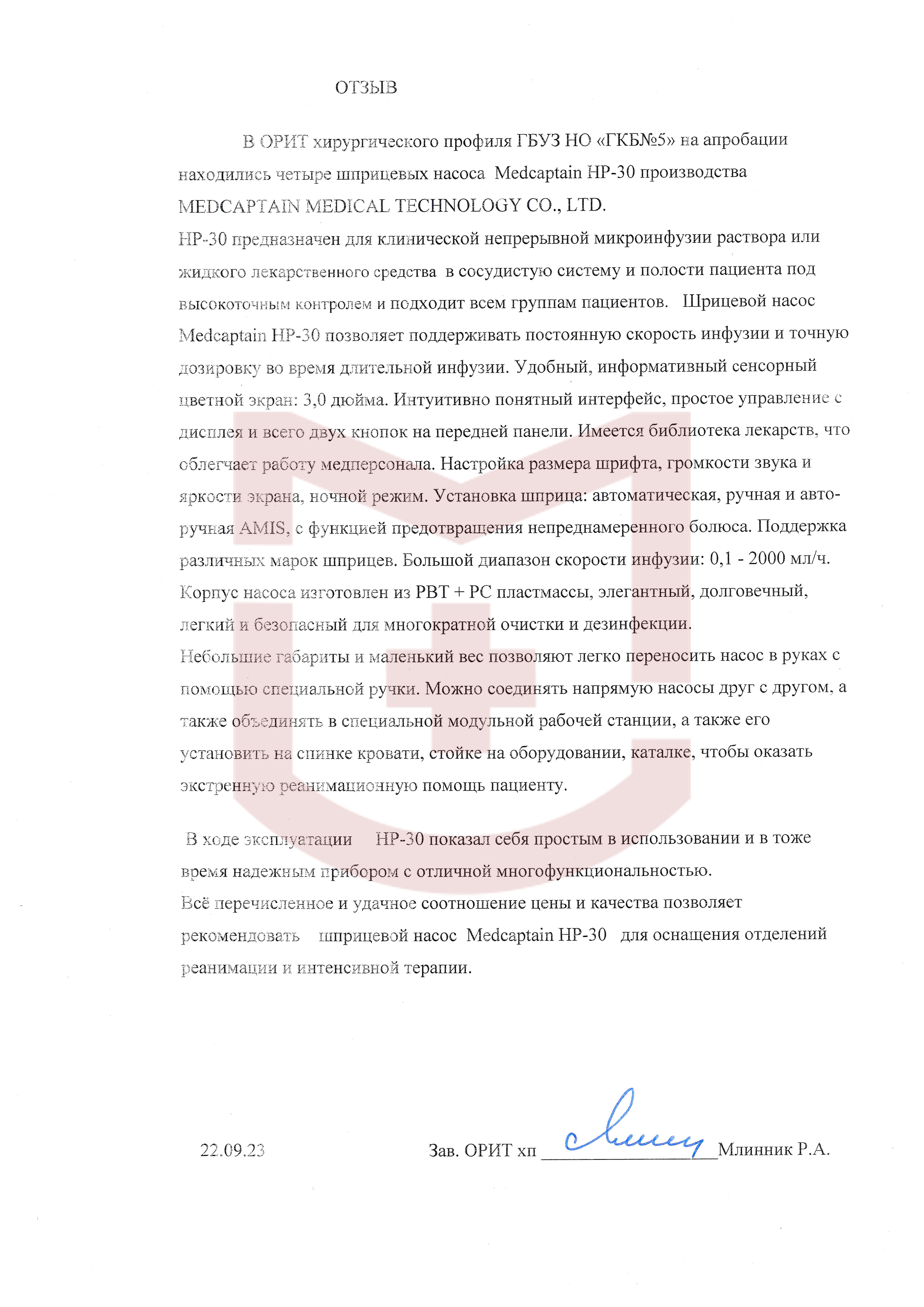 Шприцевой насос Medcaptain HP-30 позволяет поддерживать постоянную скорость инфузии и точную дозировку во время длительной инфузии.