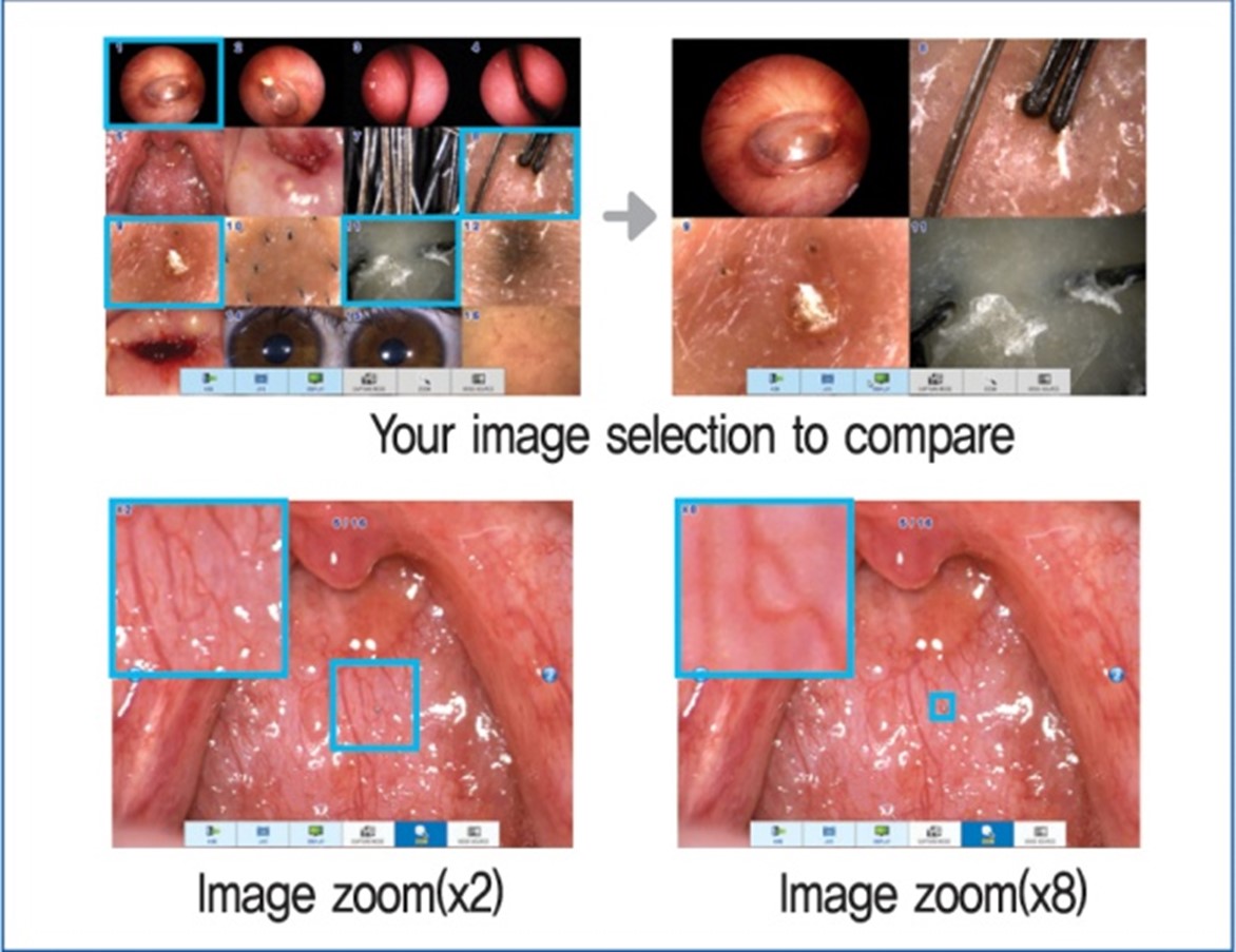 - Просмотр и сравнение: одновременный вывод до 4 кадров на экран; при использовании ПО Multi Doctor — до 16 изображений с опцией масштабирования.