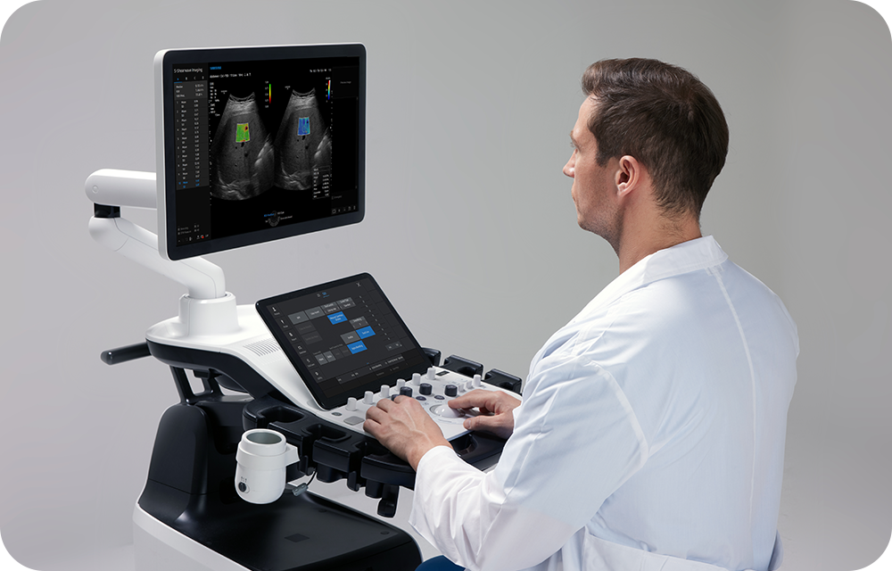 Отображение и количественная оценка жесткости тканей неинвазивным методом S-Shearwave ImagingTM позволяет проводить неинвазивную оценку состояния жестких тканей в различных областях применения. Эластограмма с цветовой маркировкой, количественные измерения, опции отображения и выбираемые пользователем функции ROI полезны для точной диагностики.