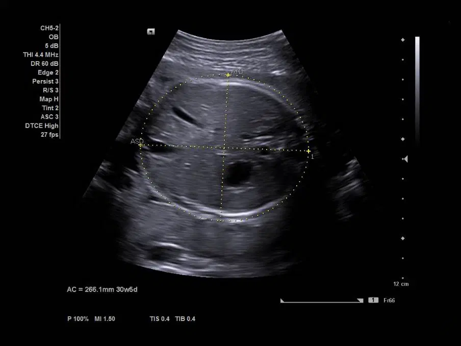 Измерение окружности живота плода с помощью функции syngo® Auto OB и датчика CH5-2
