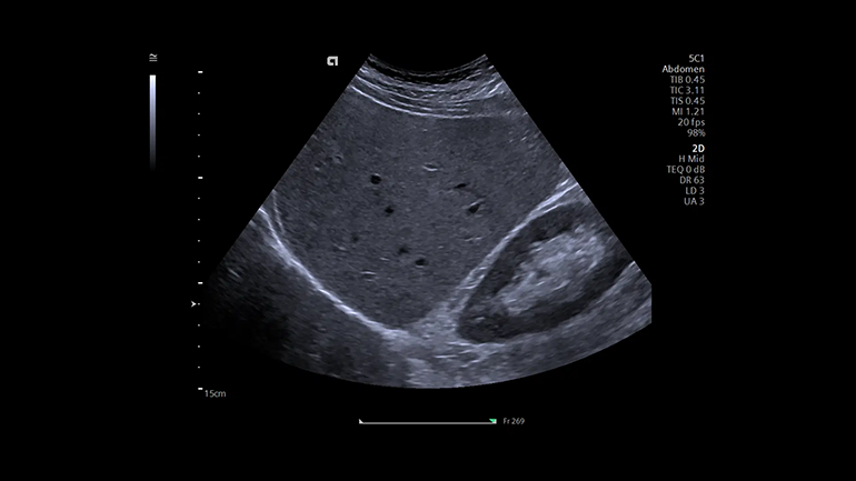 Технология качественного определения жесткости ткани в зоне интереса Point Shear Wave (pSWE). Технология точечной эластографии со сдвиговой волной позволяет получать воспроизводимую, надежную и подробную информацию о жесткости исследуемой ткани и помогает в оценке состояния, например, печени.