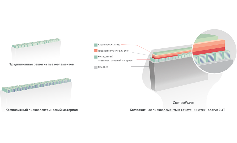 По сравнению с традиционными датчиками, в датчиках с технологией ComboWave используется новый тип композитного пьезоэлектрического материала. Благодаря свойствам этого материала, оптимизируется акустический спектр и подавляются акустические шумы.