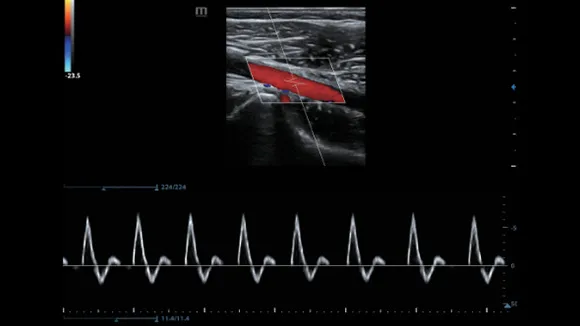 Функция автоматически позиционирует допплеровскую рамку и изменяет угол ее наклонения в режиме ЦДК, определяет положение и размер контрольного объема в режиме PW, таким образом сокращается количество повторяющихся трудоемких шагов операции при обследовании сосудов.