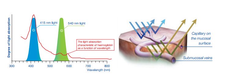 - Технология узкоспектральной визуализации NBI для получения ярких и детализированных изображений кровеносных сосудов и структур слизистой и подслизистого слоя.